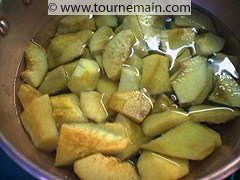 | 2. Couvrir d'eau les quartiers ainsi que les épluchures, et amenez à ébullition. Laissez cuire 30 minutes. | ![]() |