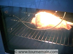 | 3. Le triple secret de la réussite : un four chaud à 190°C, la chaleur tournante, et la sonde de température qui permet d'arrêter la cuisson à 60°C. | ![]() |