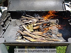 | 1. Préparez un bon feu avec du vrai bois. Évitez autant que possible le charbon de bois et les produits pour allumer le feu. Ces produits communiquent un goût désagréable aux aliments. | ![]() |